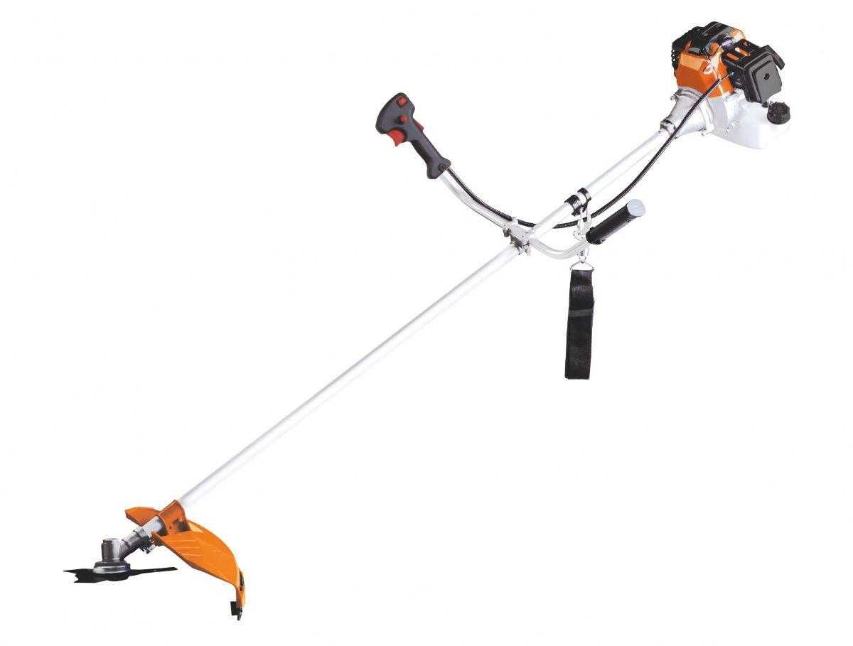 Недорогой бензиновый триммер, мощностью 2.4 л.с. Оснащен двухтактным двигателем, который расположен в верхней части инструмента. Позволяет скашивать траву полосой в ширину на 44 см. Отдельного травосборника в конструкции не предусмотрено. Есть возможность установить на рабочую часть сучкорез или кусторез, что значительно расширяет возможности триммера. Топливный бак имеет объем на 1 литр, есть тормоз для двигателя. Корпус и дека изготавливаются из пластика. Рукоять может регулироваться по высоте. По форме рукоятка Т-образная. В комплекте поставляется ремень, нож, леска.