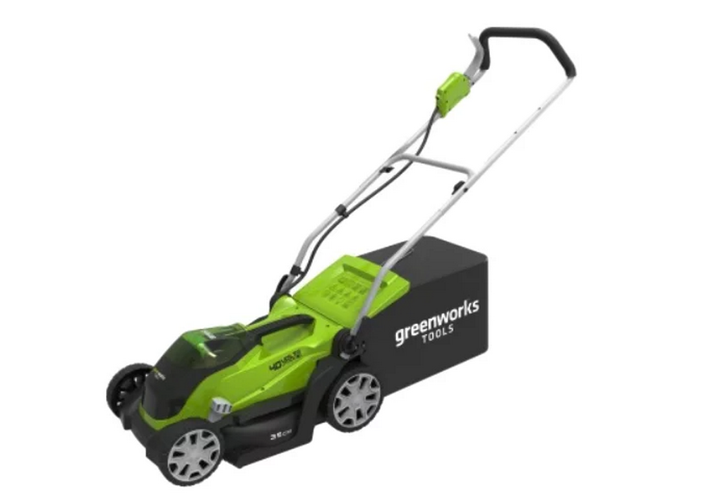 Наличие заточенного стального ножа позволяет чисто срезать стебли, уровень заполнения 35-литрового травосборника регулируется с помощью специального указателя. А ещё у газонокосилки есть защита от детей, складная конструкция и гребёнки для захватывания травы по краям. Вес модели – всего 11,3 кг, есть возможность мульчирования и быстрой зарядки аккумулятора.
