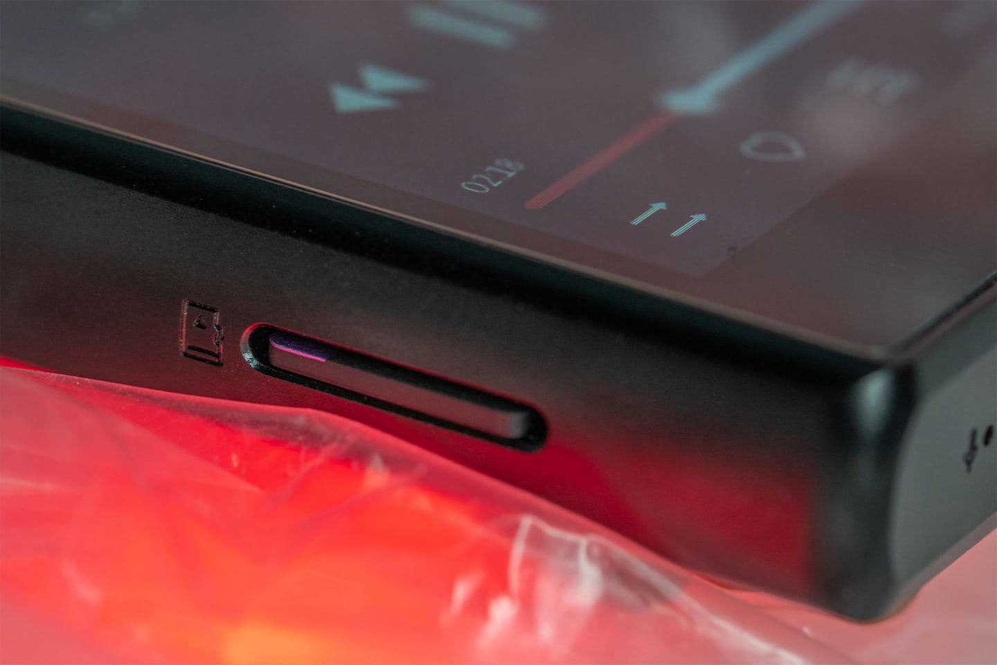 Встроенной памяти у M3 Pro нет — нужно использовать карты памяти MicroSD. Плеер поддерживает карточки объемом до 2 Тб, так что можно сполна воспользоваться его умением читать DSD (правда, на обновление библиотеки с забитой под завязку карты уйдет немало времени). Слот под карточки расположен на той же грани, что и кнопки, но ближе к нижнему торцу.