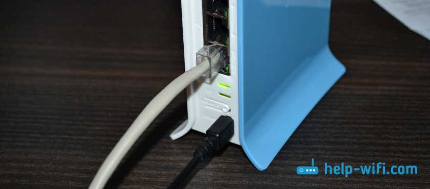 Сначала подключите адаптер питания и включите его в розетку. Так же сразу можете подключить к MikroTik интернет (сетевой кабель от провайдера, или модема). В порт Internet.