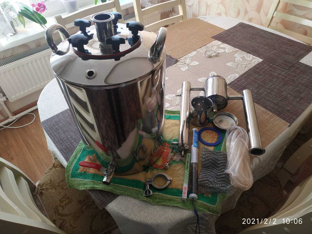В мае 2021 года ребята сделали 2 перегонных куба на выбор — кастрюльного типа и на барашках. Второй вариант идет чуть дешевле, но зато в первом есть готовая врезка под ТЭН. Лично мне даже барашковые кубы заходят больше, потому что это невероятно надёжно. Плюс кламповое соединение есть как в первом случае, так и втором. Поэтому при выборе точно не ошибётесь.