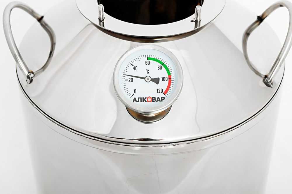 температура перегона контролируется биметаллическим термометром, закрепленным на кубе;