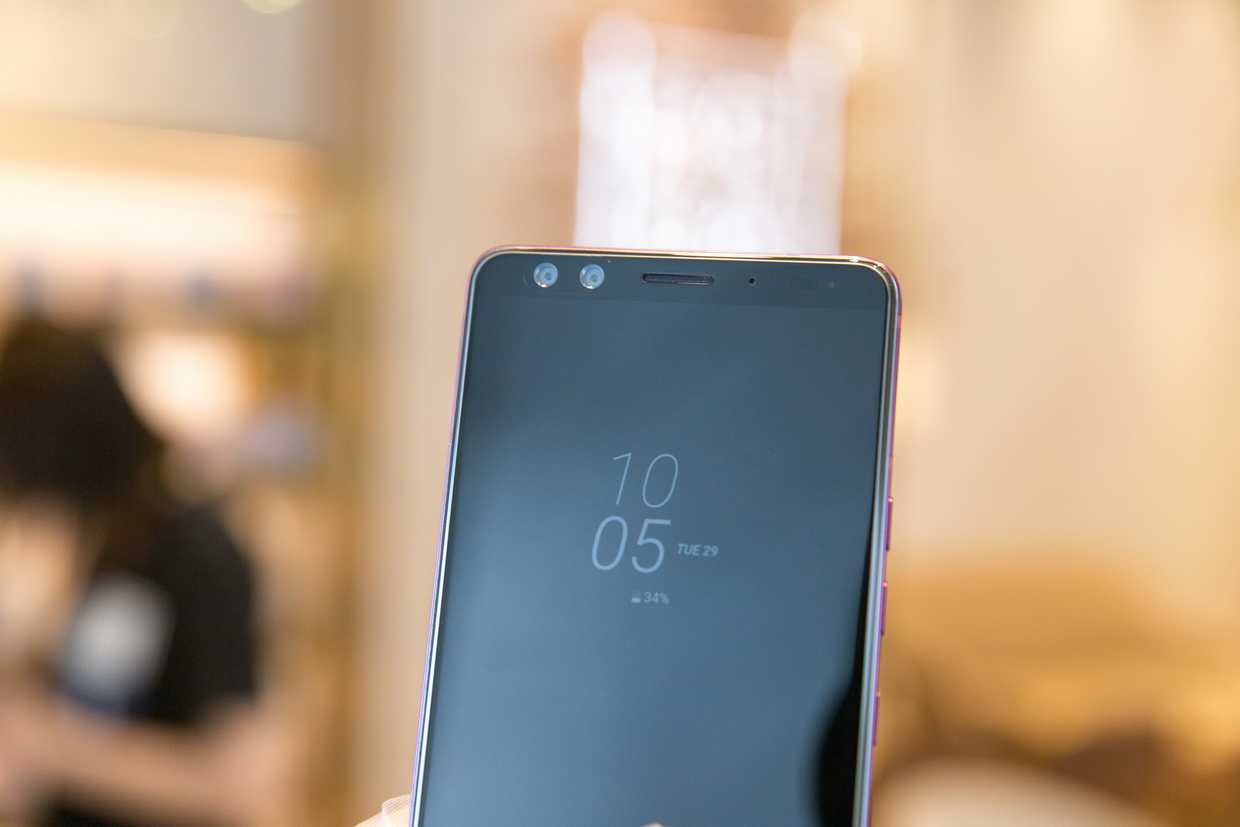 Фронтальная панель стала отсылкой к смартфонам прошлых поколений: не смотря на вытянутый под соотношение сторон 18:9 экран, обошлось без камеры внизу и островка-«брови». Передняя камера на привычном месте, датчиков уместился полный набор.