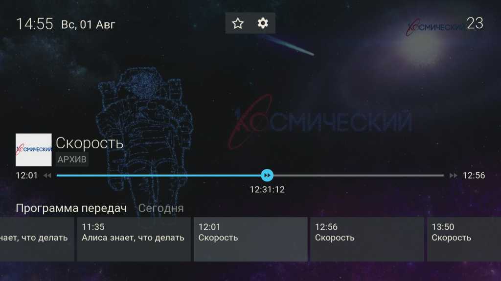 Телегид удобный, навигация по нему шустрая. Скорость переключения телеканалов при трансляции со спутника составила 2–3 секунды.