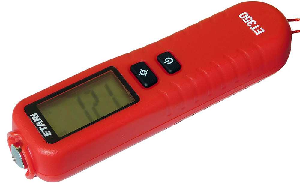 «Сердце» измерителя — электромагнитный датчик, который взаимодействует с металлическими основаниями. На основе оценки «отклика» (силы взаимодействия) аппарат делает вывод о толщине краски. Модель ETARI ET 10P работает только с основаниями из черных металлов (железо и его сплавы). В непрерывном режиме с включенной подсветкой прибор продержится 8 часов. Еще одним приятным бонусом для российского покупателя станет возможность работы при минусовых температурах (вплоть до -25 градусов). Такие экстремальные условия совершенно не подходят для более изнеженных, дорогостоящих моделей, о которых уже шла речь выше.