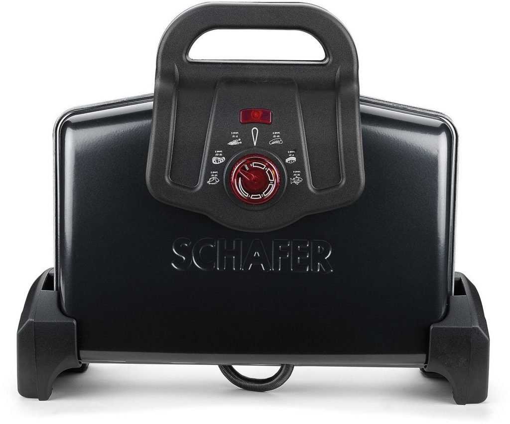 Электровафельница турецкого производителя Schafer 1S502-25007 совмещает в себе функции вафельницы, тостера и гриля. Для приготовления тостов и гриля в комплект входят сменные панели, которые очень просто вставляются в устройство. За один прием можно приготовить две круглые толстые венские вафли довольно большого размера – по 15 сантиметров, или же шесть тостов, или запечь куриную грудку с овощами.