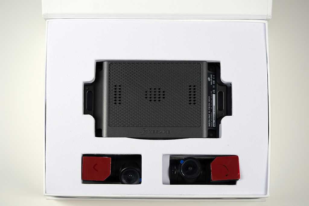 Как добиться того, чтобы камеры были размером меньше зажигалки, как в Neoline G-Tech X53? Вынести почти все «железо» в отдельный блок управления. Прецеденты уже были, но всегда такую «коробчонку» приходилось устанавливать в поле зрения водителя. Хотя бы потому что в ней был микрофон.